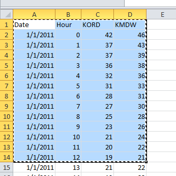 For example, say you have a table in excel you want to copy into R. First, copy it in Excel.